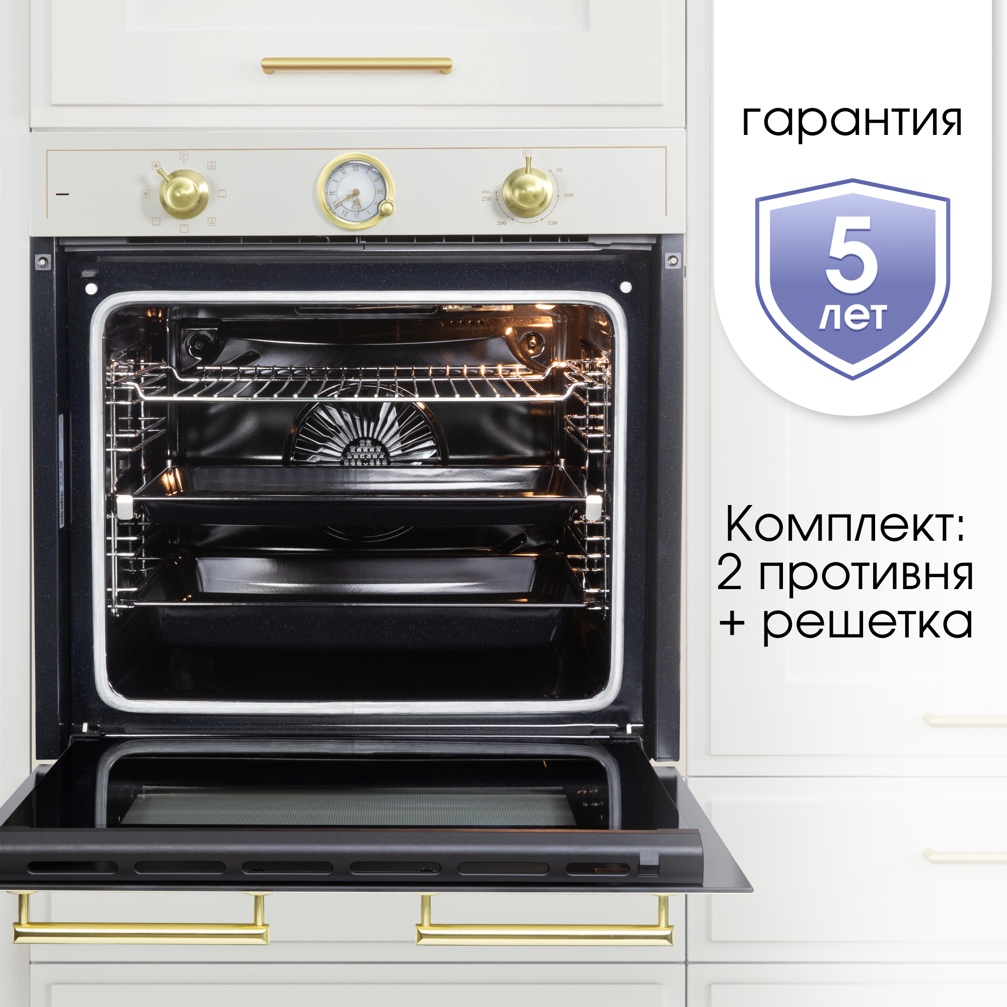 Электрический мультифункциональный духовой шкаф Zigmund & Shtain E 156 X с классом потребления энергии А, что говорит о высокой энергоэффективности техники. Оснащена 7 функциями, которые точно настроить необходимый режим приготовления любых блюд. Данная модель духового шкафа относится к встраиваемому типу техники, что позволяет оформить кухонный интерьер компактно, стильно и функционально. Объемные размеры духовой камеры предназначены для приготовления блюд на большую семью. Благодаря наличию 6 уровней готовить можно несколько блюд одновременно Дверца имеет два стекла, обеспечивающих безопасность для пользователя: при работе внешняя часть остается холодной и минимизирует риск обжечься. Также стёкла можно легко снять, чтобы упростить процесс поддержания техники в чистоте. Материал внутренней части духовой камеры сделан из эмали легкой очистки без пор, в которых могли бы застрять капли жира или остатки пищи. Тангенциальное охлаждение осуществляет встроенный мощный вентилятор, который создает воздушный барьер вокруг духовки и сохраняет кухонный гарнитур в безопасности от высоких температур внутри камеры духового шкафа. Доводчик на дверце духовки заботится о тихом и аккуратном пользовании, снижая вибрацию на корпус духовки и кухонный гарнитур. Дверца автоматически закроется до конца самостоятельно плавно и мягко. Телескопические направляющие позволяют выдвинуть противень за пределы духового шкафа, что позволяет удобнее и проще загрузить блюдо в духовку или вытащить его. Управление с помощью поворотных переключателей в сочетании с электронным программатором – отличное сочетание для лёгкого пользования. При открытии дверцы в камере духового шкафа автоматически загорится свет для удобной загрузке блюда. В комплекте есть решетка и два противня: плоский и глубокий.