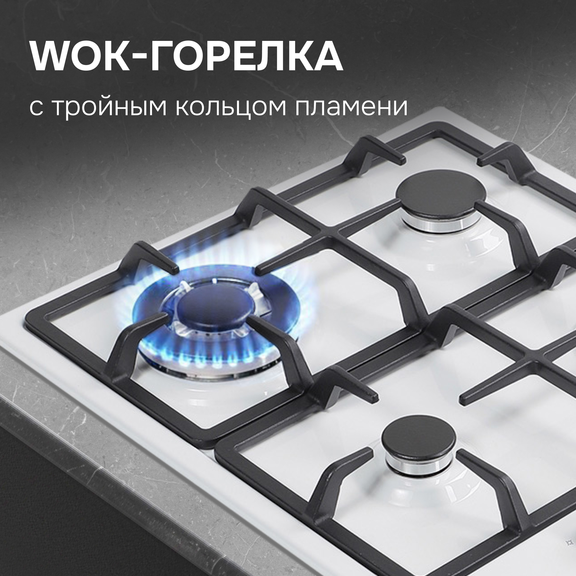 - Тройное кольцо пламени создает равномерный нагрев и максимально эффективное распределение тепла по всему дну посуды;