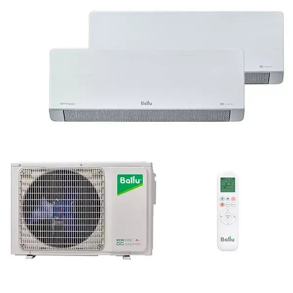 Мульти сплит система Ballu на 2 комнаты (35+20 кв.м) серия Defender - новинка 2025, сочетает строгий дизайн внутренних блоков, современные технологии и низкий уровень шума.