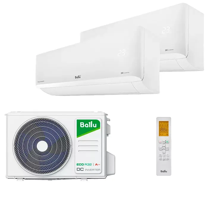 Мульти сплит система Ballu на 2 комнаты (35+35 кв.м) серия Multi Smart - новинка среди бренда Ballu, с тихими внутренними блоками. Во внутренних блоках предусмотрен USB разъем для подключения wifi модуля, а также дополнительный каталитический фильтр тонкой очистки. Данная модель комбинируется с наружными блоками на R32 фреоне из линейки с завода Midea Multi Smart.