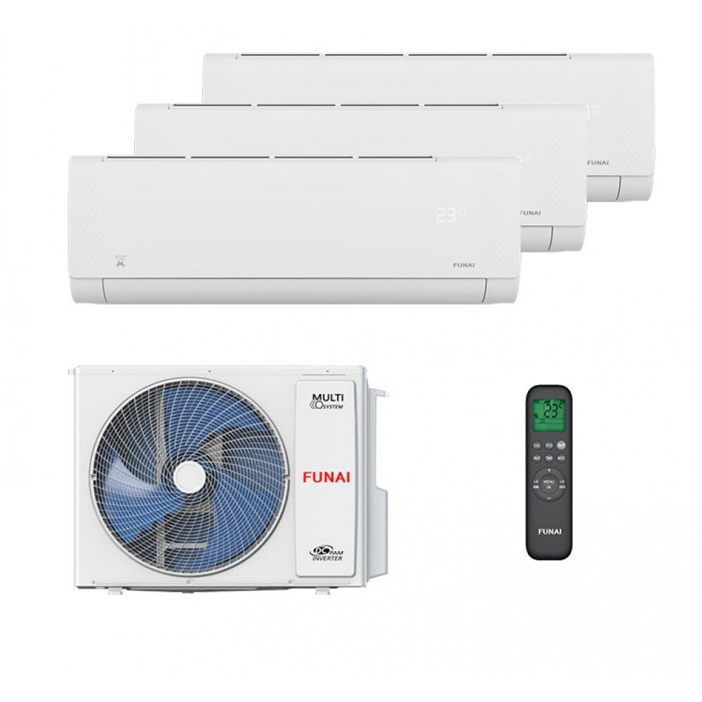 Мульти сплит-система Funai на 3 комнаты (20+20+20 кв.м.) серия SHOGUN отлично подойдет на небольшие помещения до 20 кв.м. Внутренние блоки отличаются низким уровнем шума, всего 19 дБ. Классические блоки белого цвет впишутся в любой дизайн квартиры или дома. Благодаря автоматическому регулированию вертикальных и горизонтальных жалюзи внутреннего блока, поток воздуха можно настроить так, чтобы он не попадал на человека.