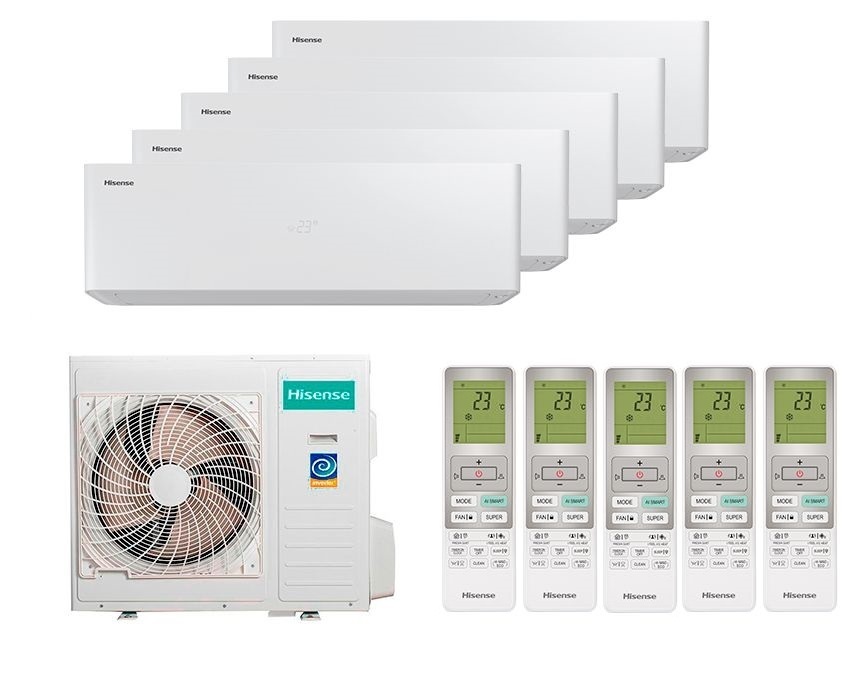 Внешний блок мульти сплит-системы на 5 комнаты Hisense (Хайсенс) FREE MATCH AMW2-14U4RGC предназначен для обслуживания внутренних блоков системы кондиционирования. В основе работы инверторная технология с электронным распределением хладагента, позволяющая поддерживать индивидуальные температуры в разных помещениях.