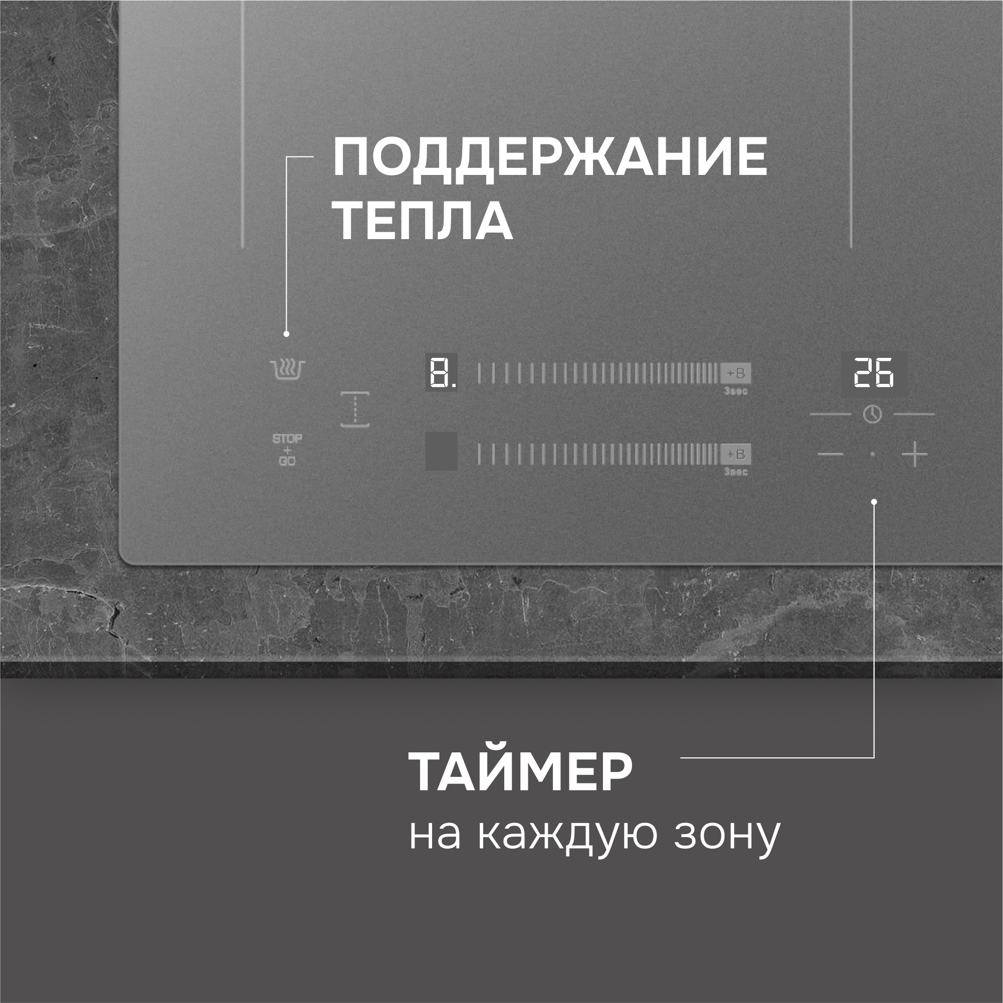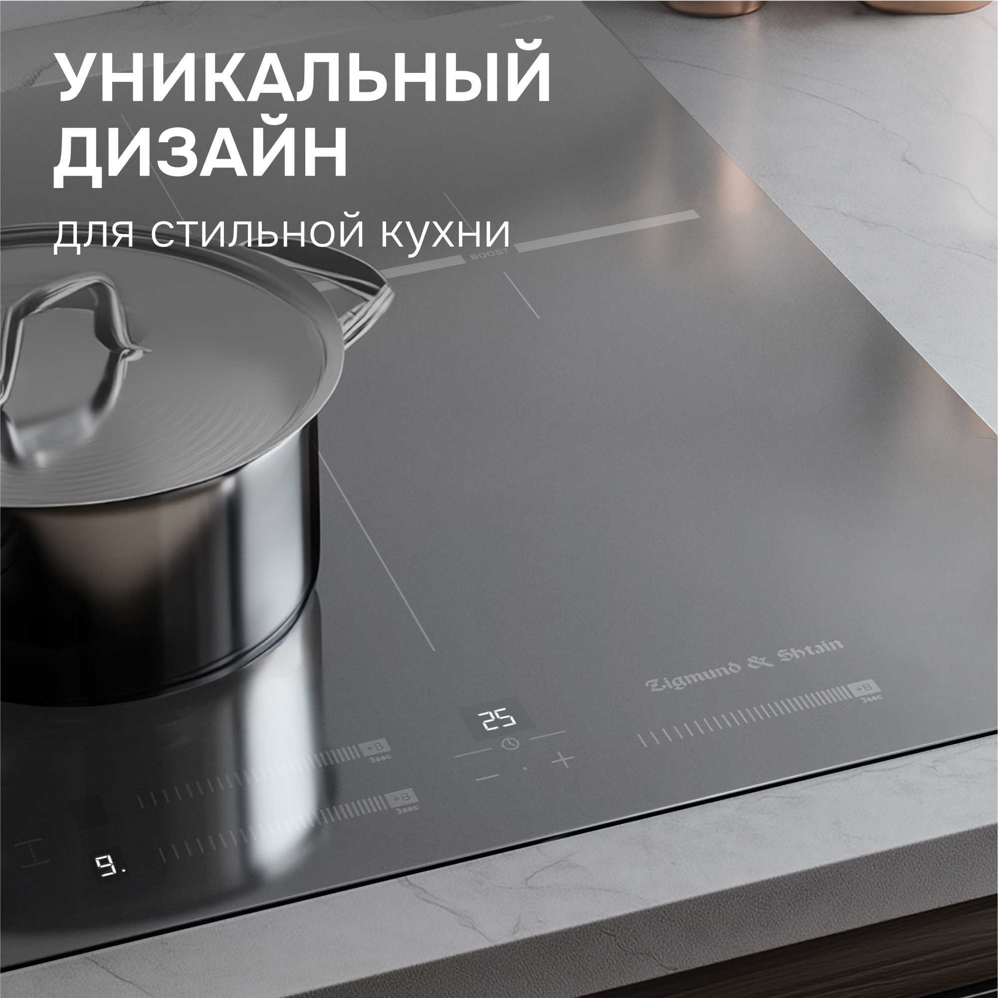 • Таймер отключения до 99 минут на каждую зону нагрева избавляет от необходимости постоянного контроля за процессом приготовления, например, при варке яиц и макарон.
